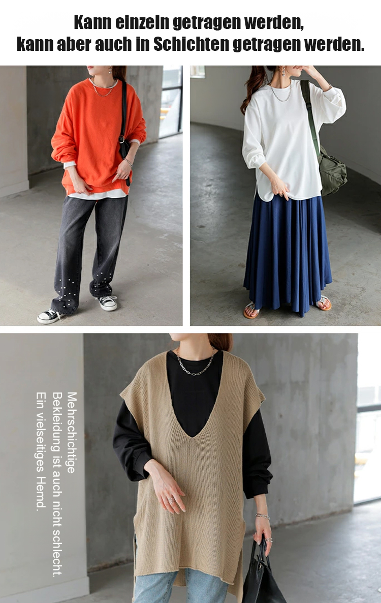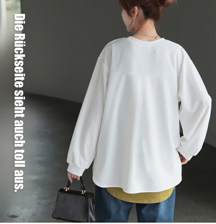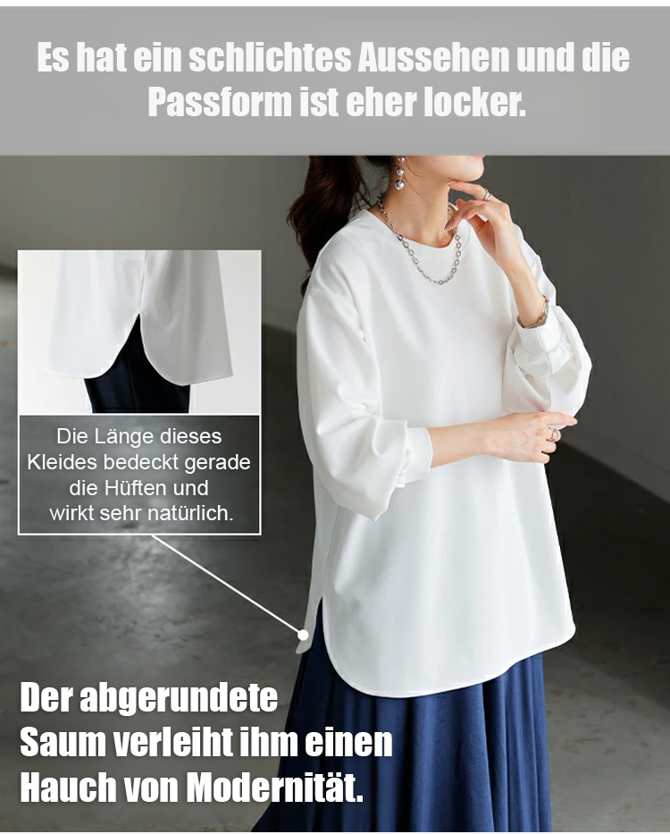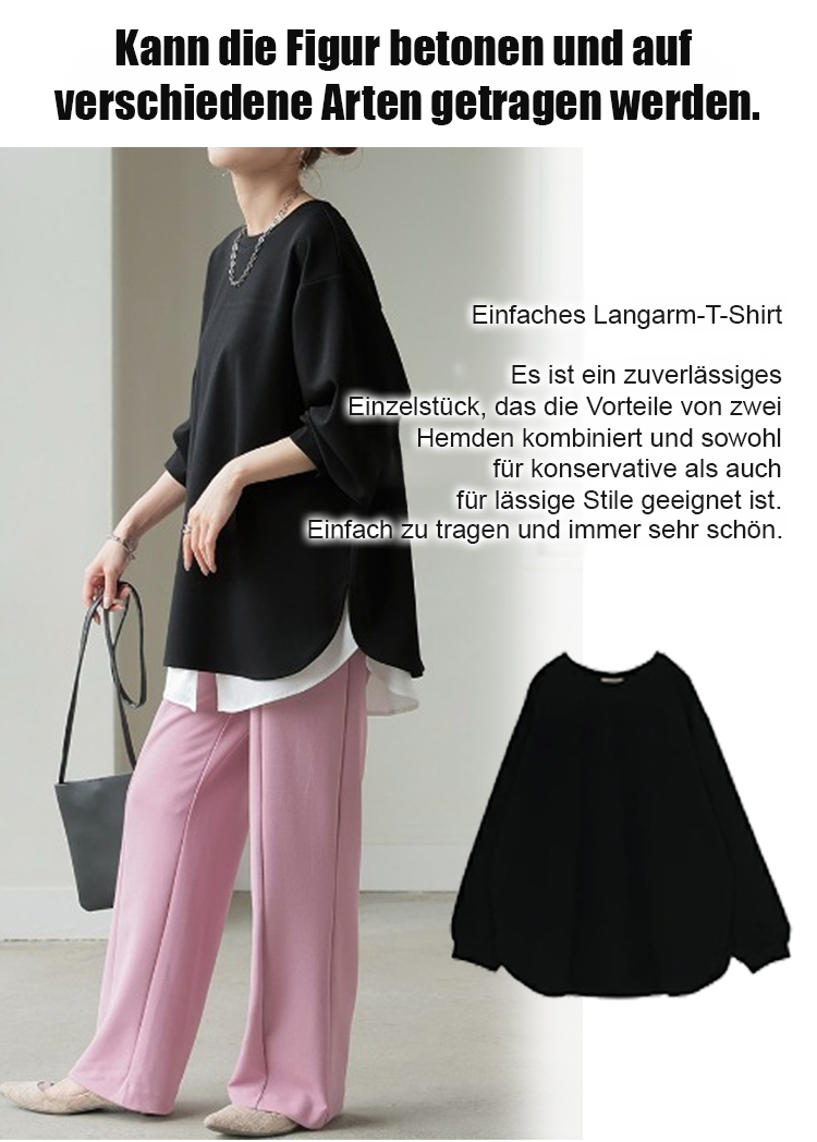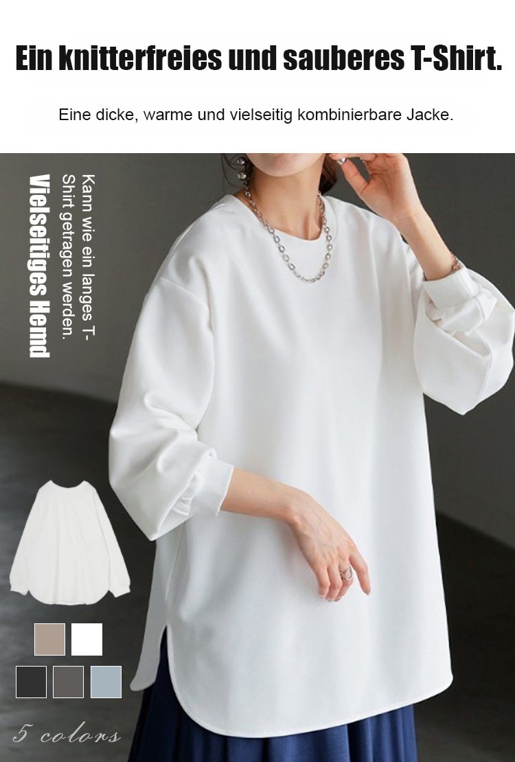Neue Ware in 5 Farben auf Lager, Herbst/Winter locker geschnittenes, lässiges, unifarbenes Langarmsh