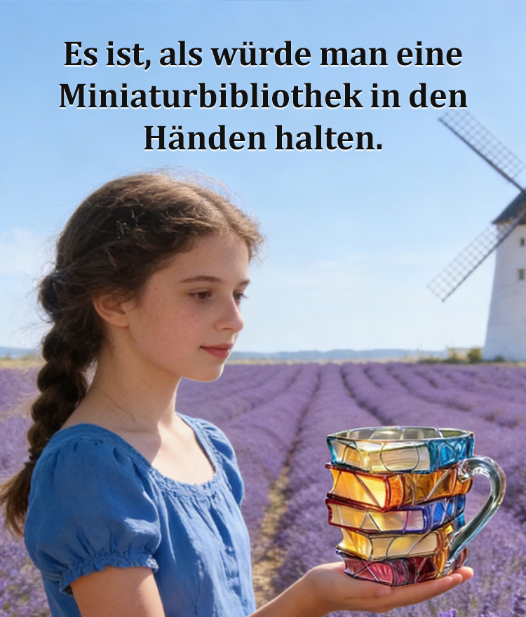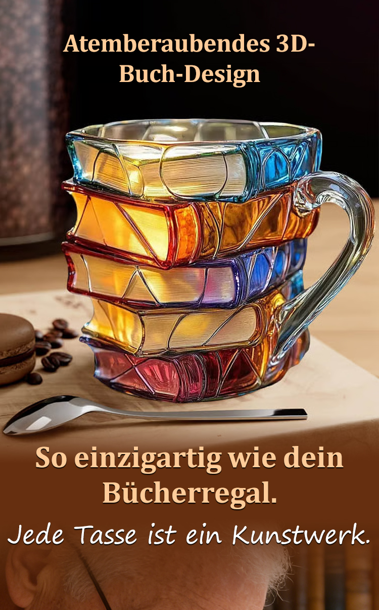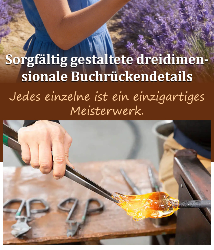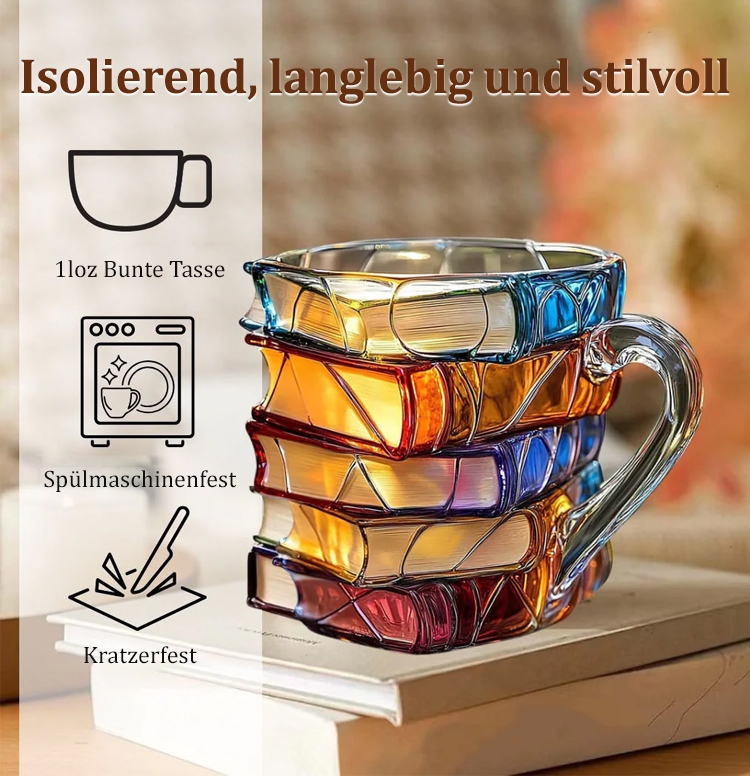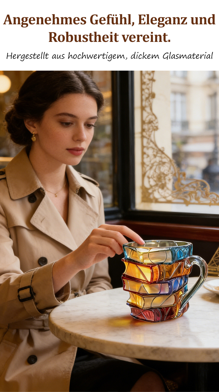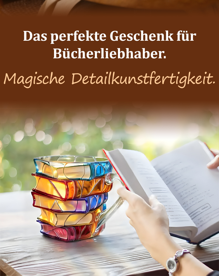 🌈Handgeätzte Details in edlen Farben: sieht aus wie ein Stapel Bücher!📚【Handgefertigt】3D-Leseglas