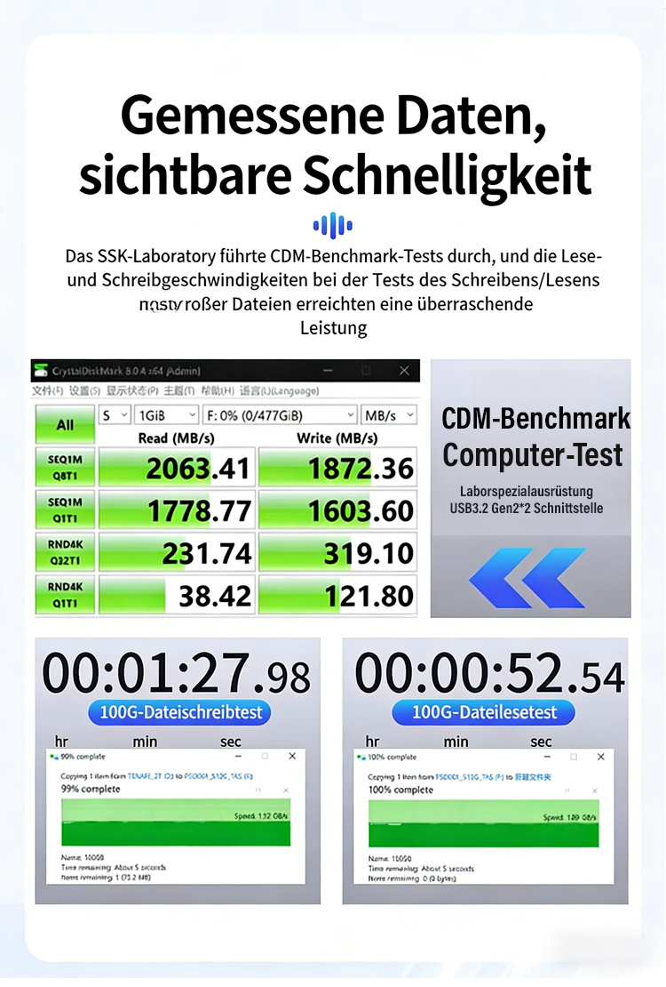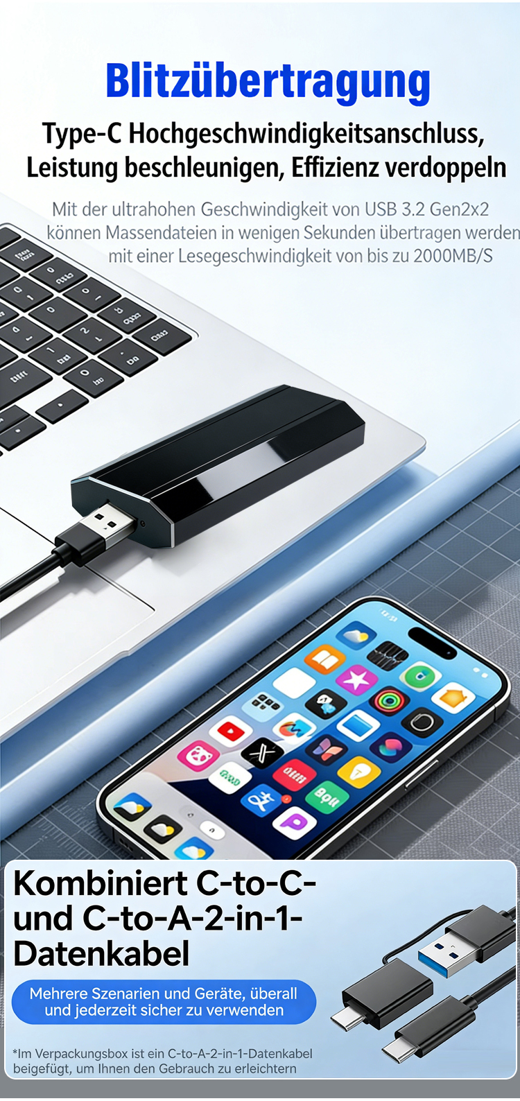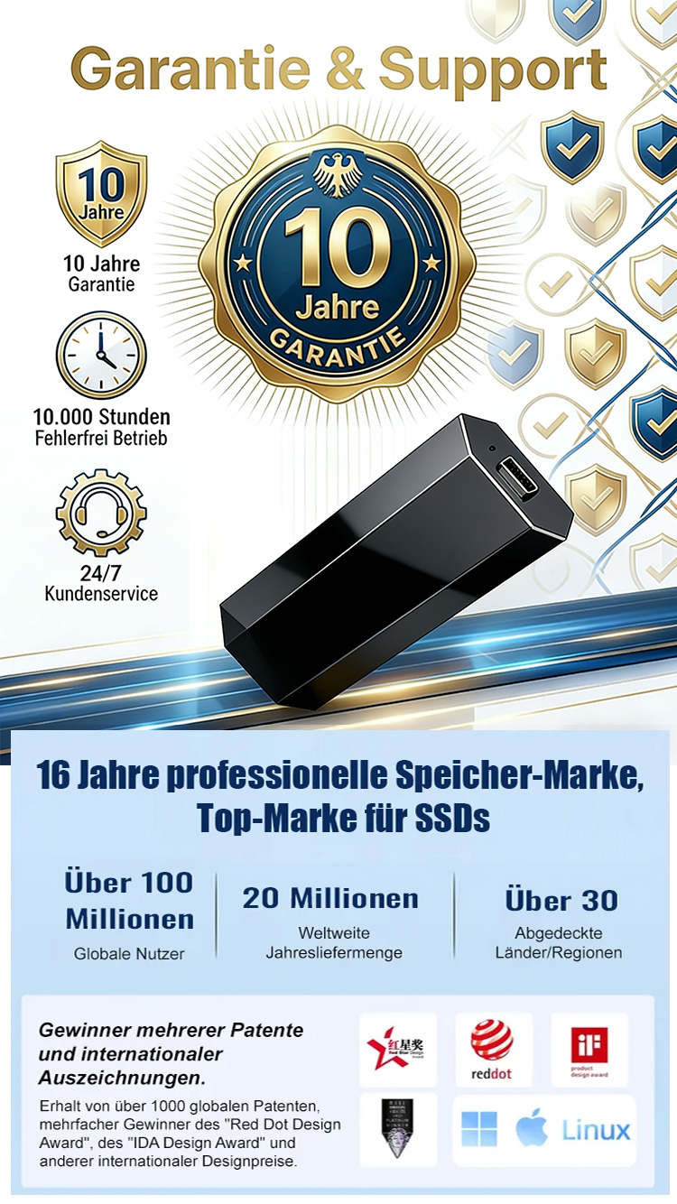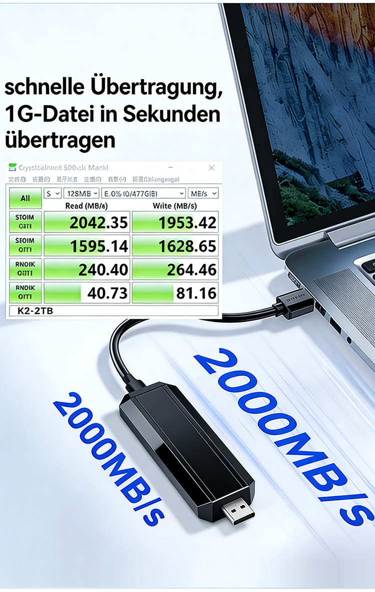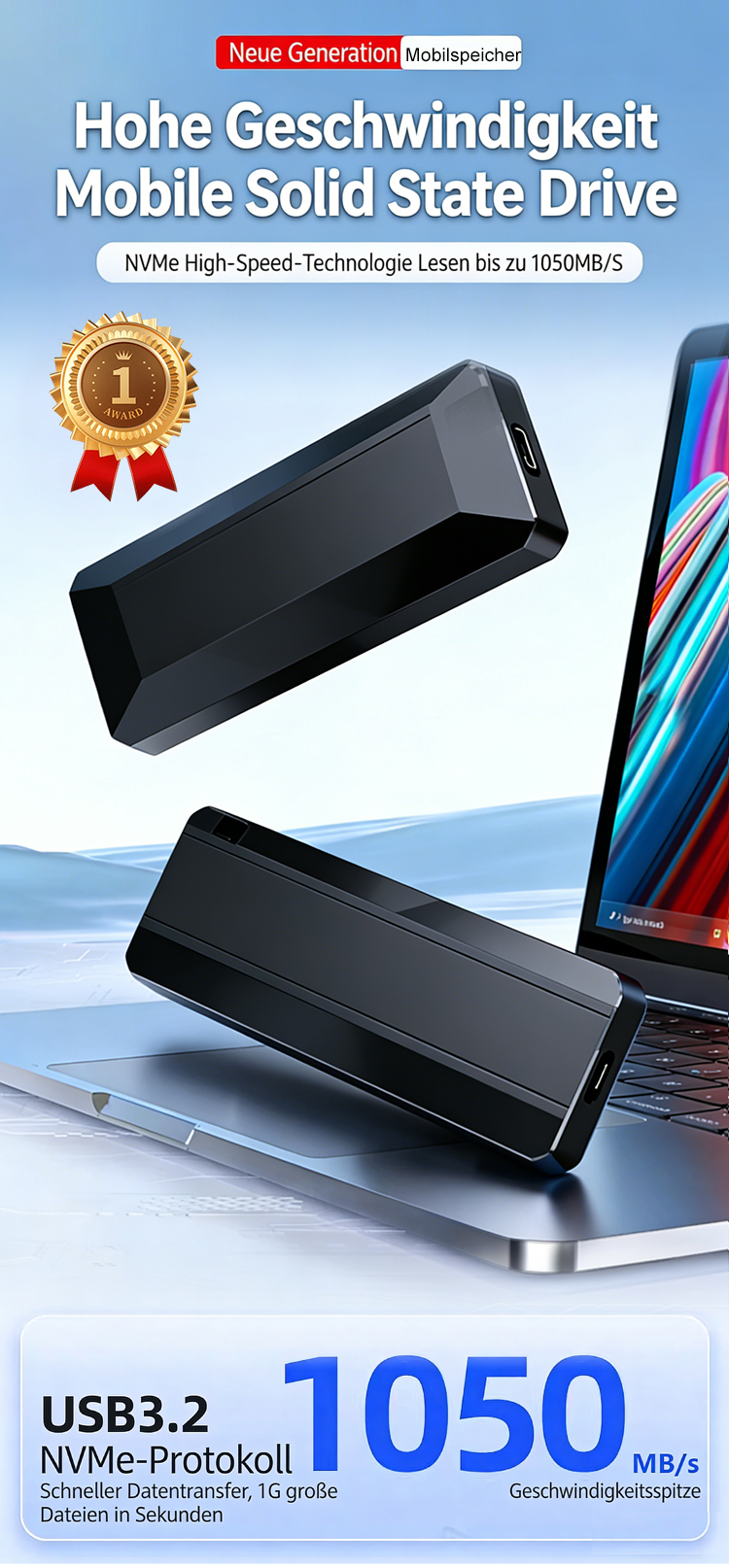 🚀 Bis zu 950 MB/s dank PCIe & NVMe Technologie. Ein HD-Film in unter 2 Sekunden übertragen.