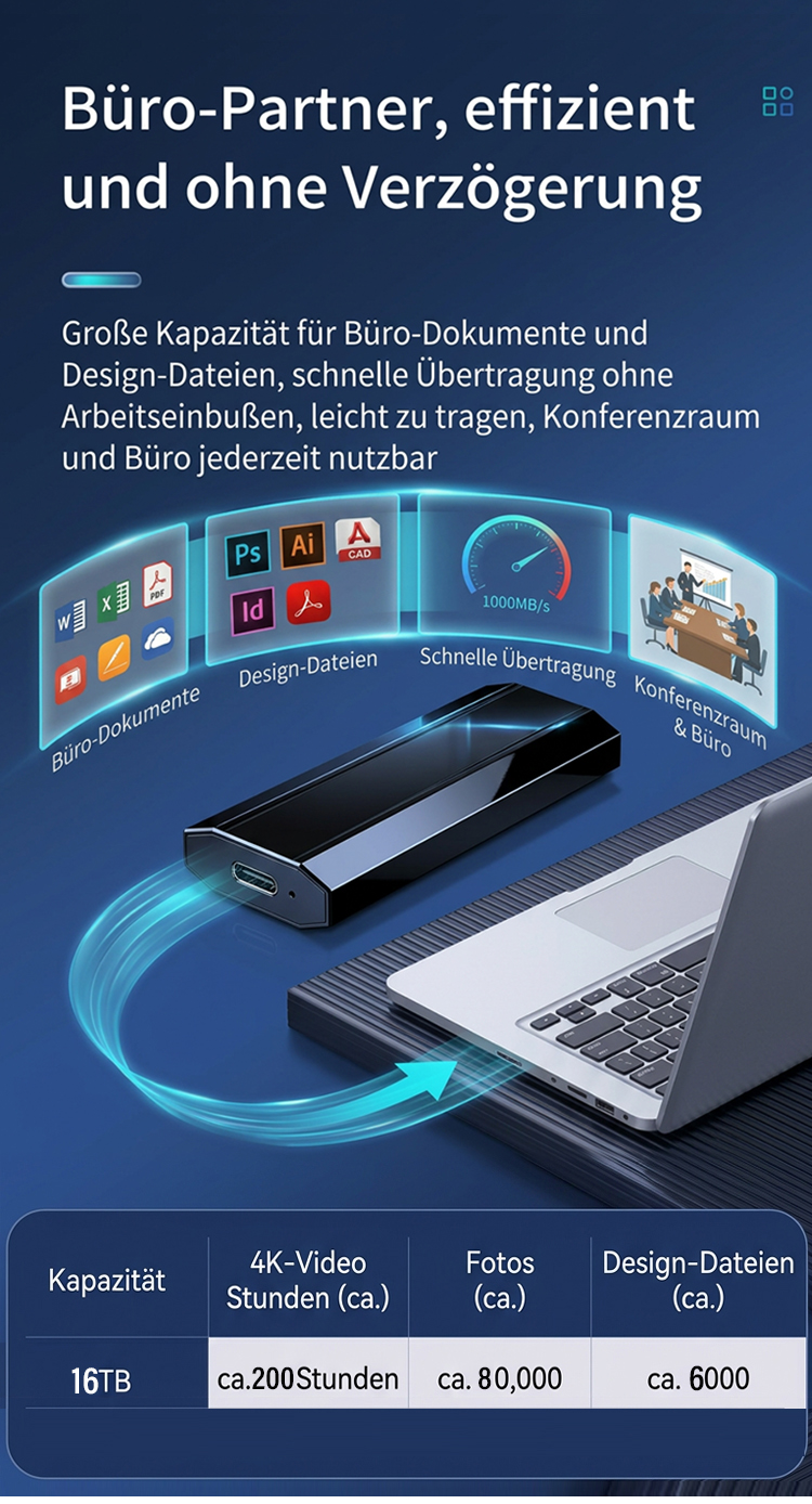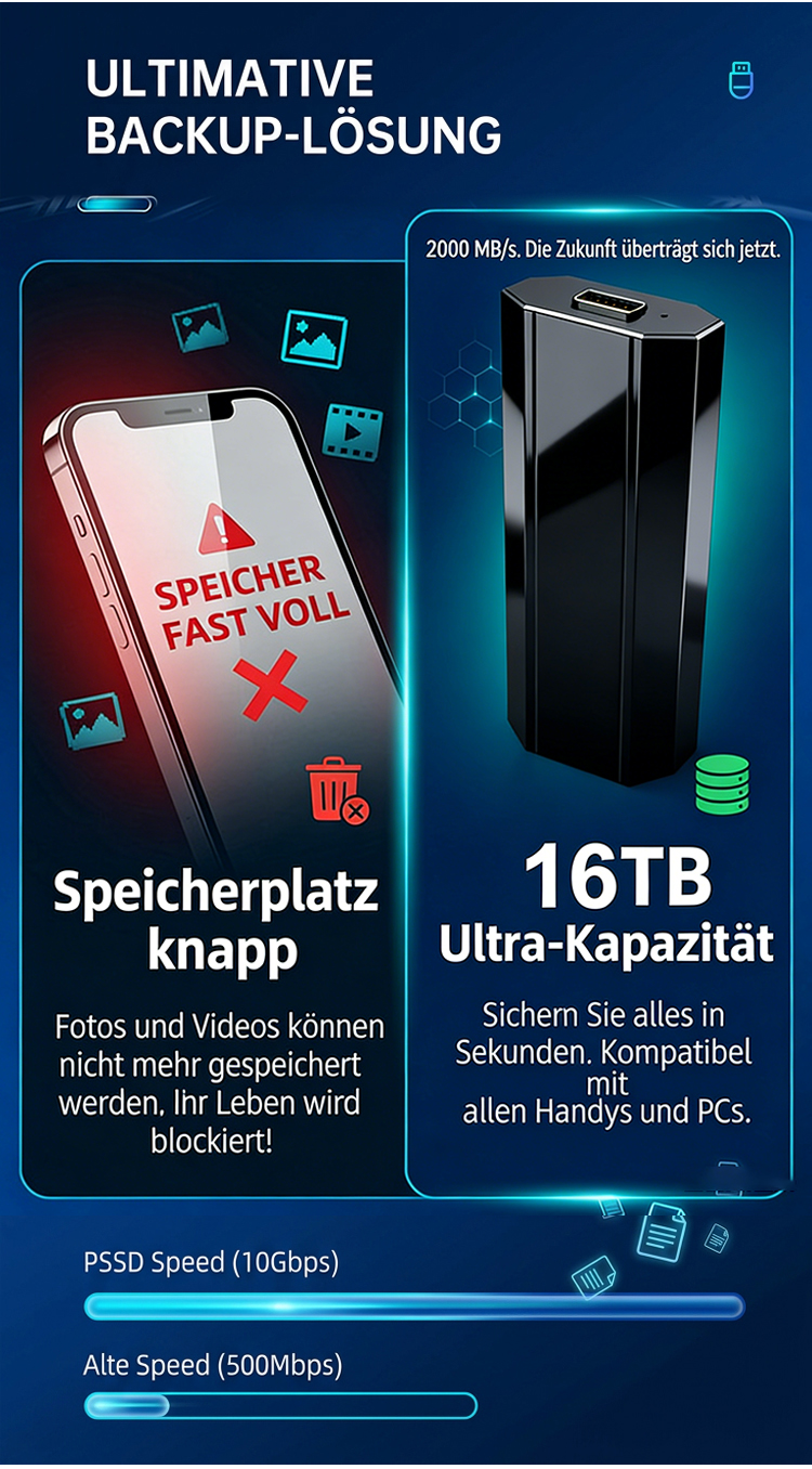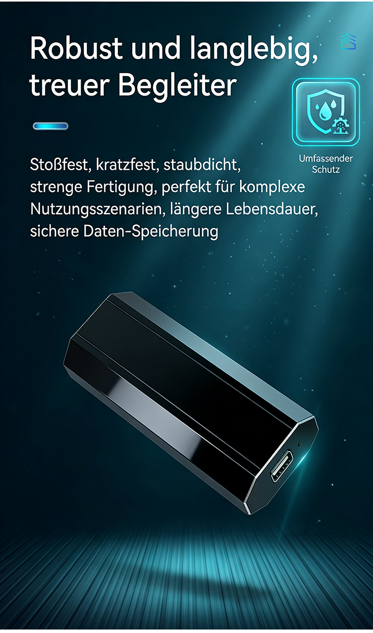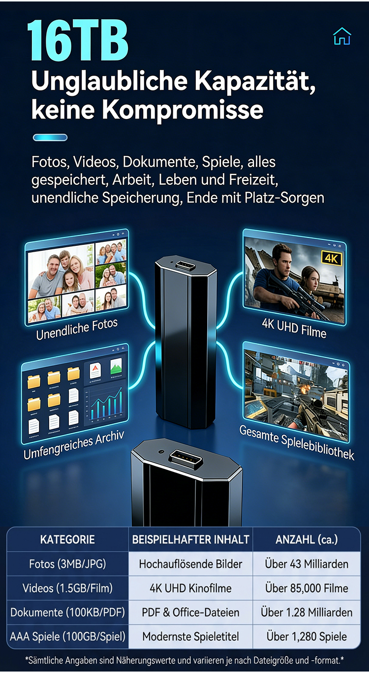 16 Terabyte Speicher | Externe tragbare SSD-Festplatte | ⚡Extrem Schnell: 905 MB/s! | 🛡️IP54 Wasser- & Stoßfest