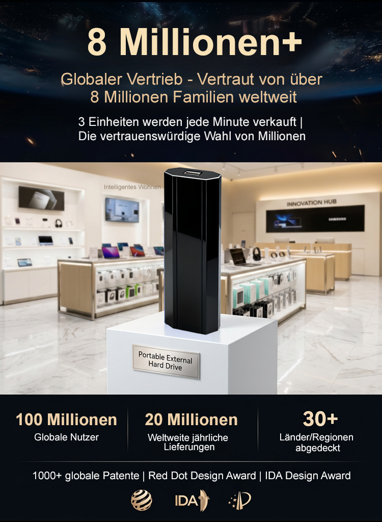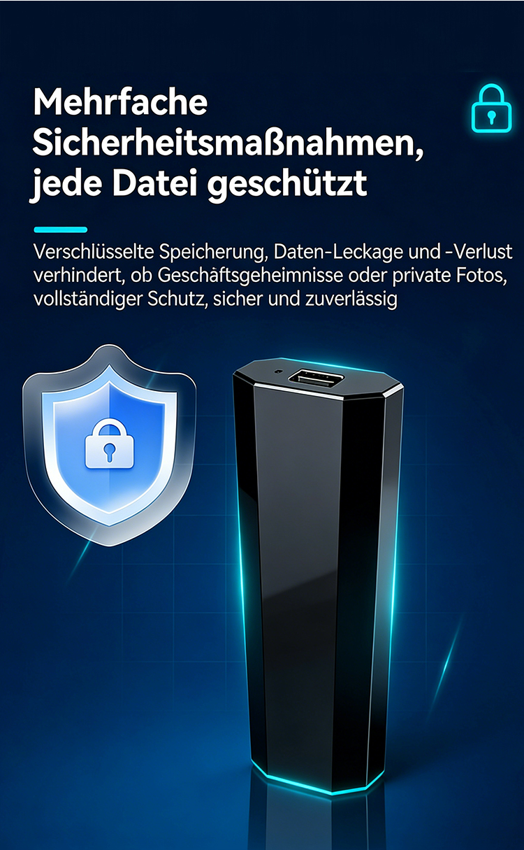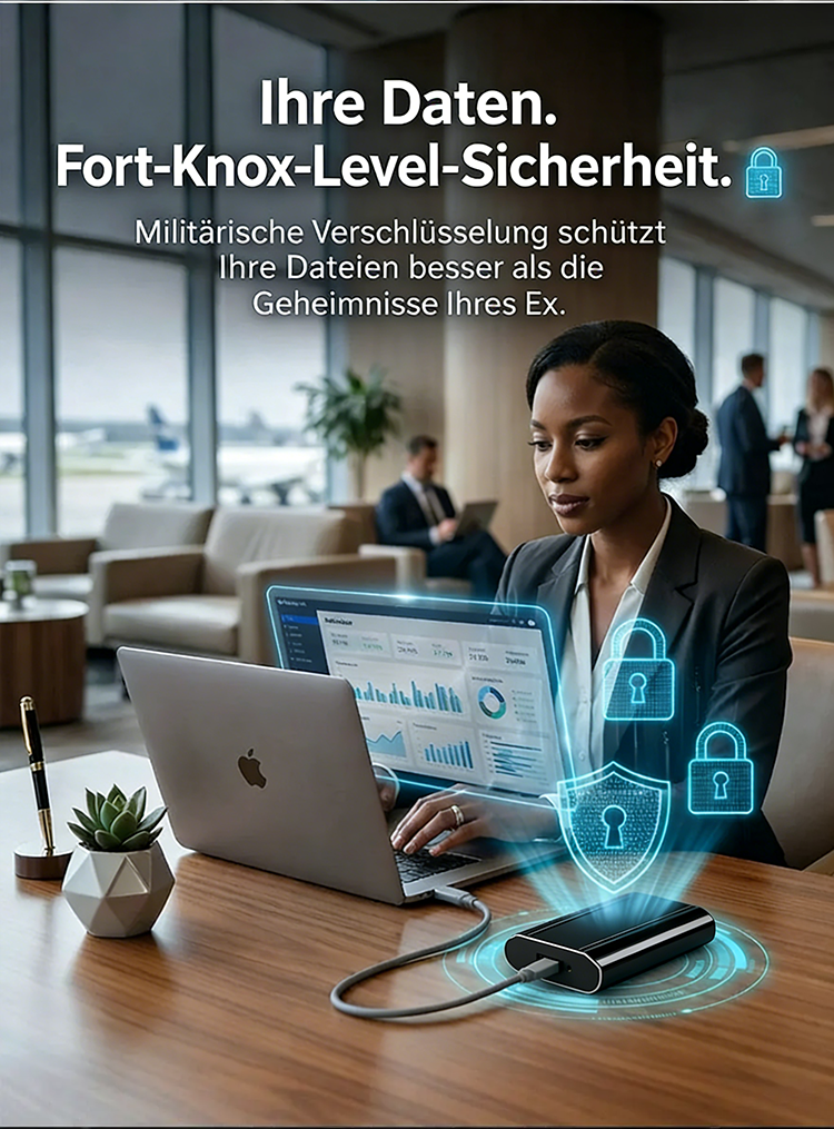 256-Bit AES Hardware-Verschlüsselung für maximale Sicherheit.